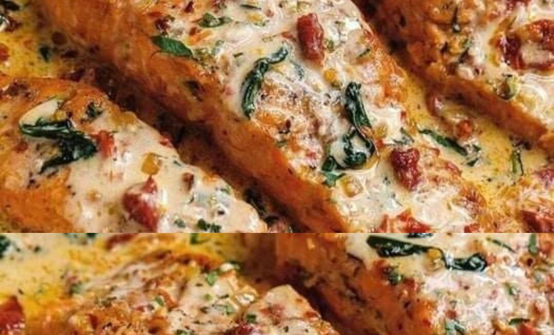 Pour préparer la recette crémeuse de saumon toscan à l’ail: Chauffer l’huile dans une grande poêle à feu moyen-vif.Assaisonner les filets de saumon des deux côtés avec du sel et du poivre et saisir dans la poêle chaude, côté chair en premier, pendant 5 minutes de chaque côté, ou jusqu’à ce qu’ils soient cuits à votre goût. Une fois les filets de saumon cuits, les retirer de la poêle et réserver.