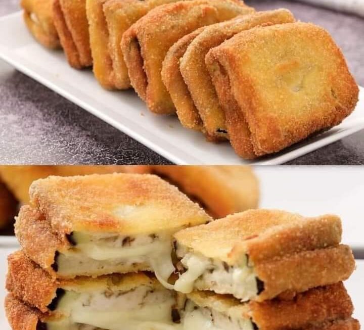 Couper la mozzarella et laisser sécher 30 minutes. Étiquetez l’aubergine avec les tranches et la salade. Mettez la mozzarella entre deux tranches d’aubergine.