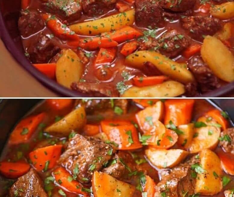 Après le temps écoulé, incorporer les carottes et les pommes de terre dans la cocotte et poursuivre la cuisson pendant 1 h.