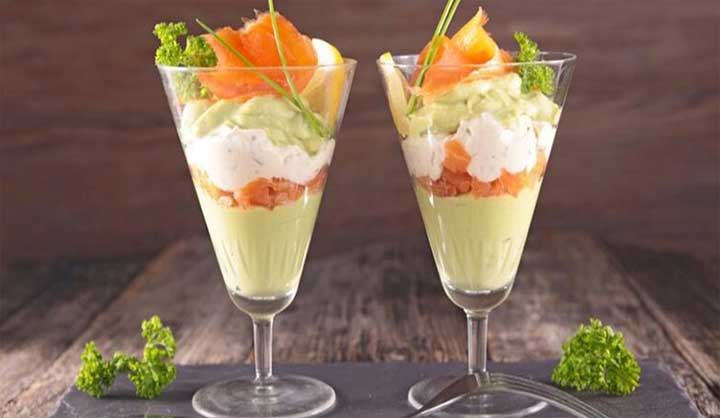 Pour épatez vos convives lors d’un repas de fête, confectionnez de très jolies verrines de mousse d’avocats et saumon fumé. Rapides et facilement à préparez, elles plairont au plus grand nombre grâce à l’association avocat saumon fumé. Vous pourrez les servir en entrée ou en petites verrines ou en cuillères à l’apéritif.