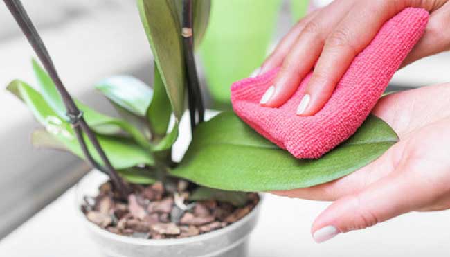 Si ses pétales semblent nécessiter le plus grand soin en raison de leur aspect fragile, n’en oubliez pas les feuilles pour autant. Et ce conseil s’applique à toutes les fleurs, quel que soit leur type. Ces dernières doivent être nettoyées avec un chiffon imbibé d’eau distillée et de quelques gouttes de jus de citron. Une autre astuce de grand-mère consiste à utiliser un disque de coton imbibé d’un mélange d’eau et de lait pour procéder à cette tâche.