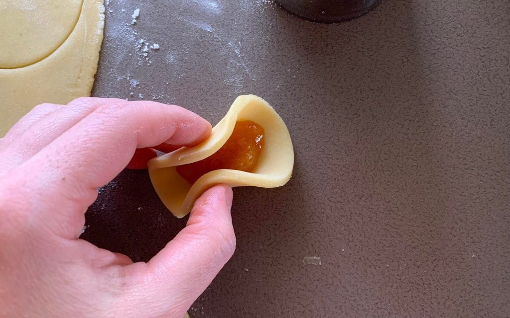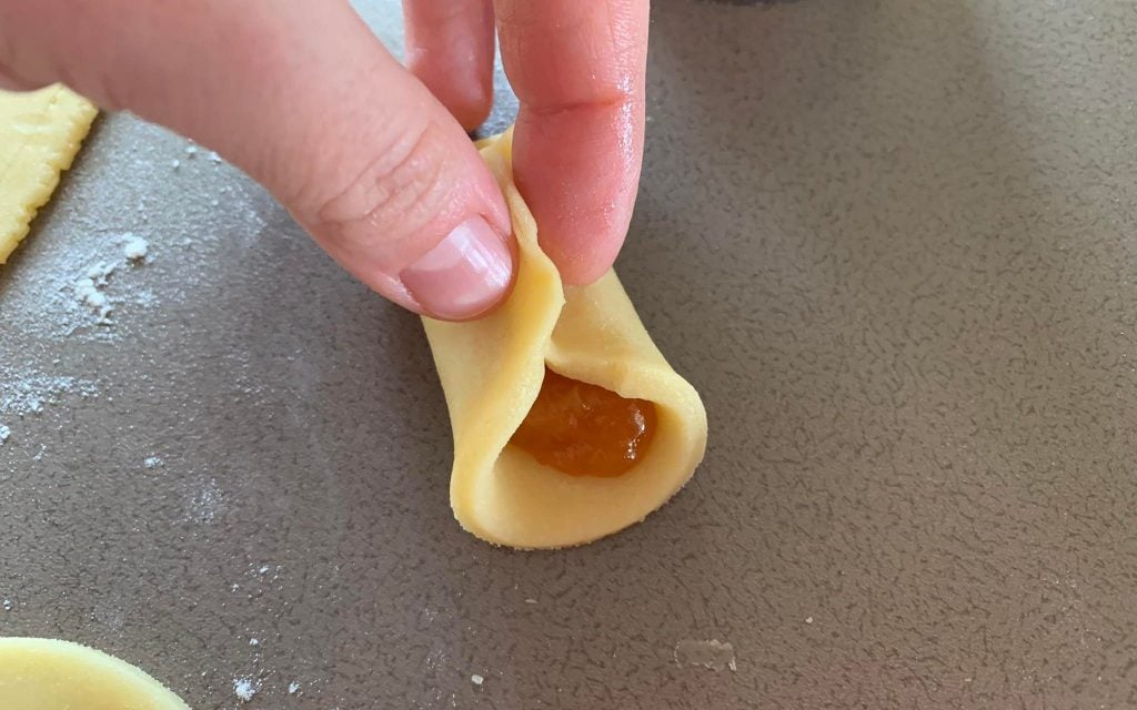 Vous pouvez utiliser la confiture que vous préférez , l’important est qu’elle ne soit pas trop fluide sinon elle coulera complètement à la cuisson, ruinant les biscuits ; si vous le souhaitez, vous pouvez également le remplacer par une crème cacao et noisettes ou par une pâte à tartiner au chocolat noir si vous aimez les saveurs plus décisives. Si vous souhaitez donner aux biscuits une forme pointue, vous pouvez découper des carrés au lieu de cercles, puis pincer les extrémités opposées ensemble.