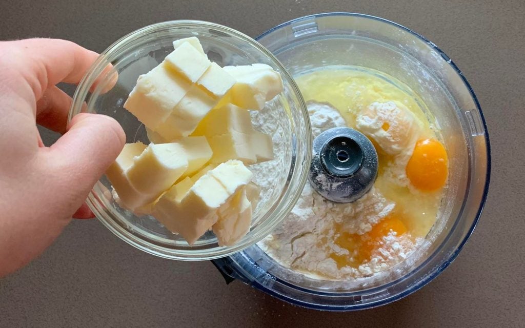 Préparez la pâte brisée en versant la farine, le sucre, le sel, la vanille et les œufs dans un mixeur de cuisine. Ajouter le beurre froid coupé en petits morceaux1.