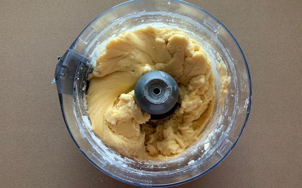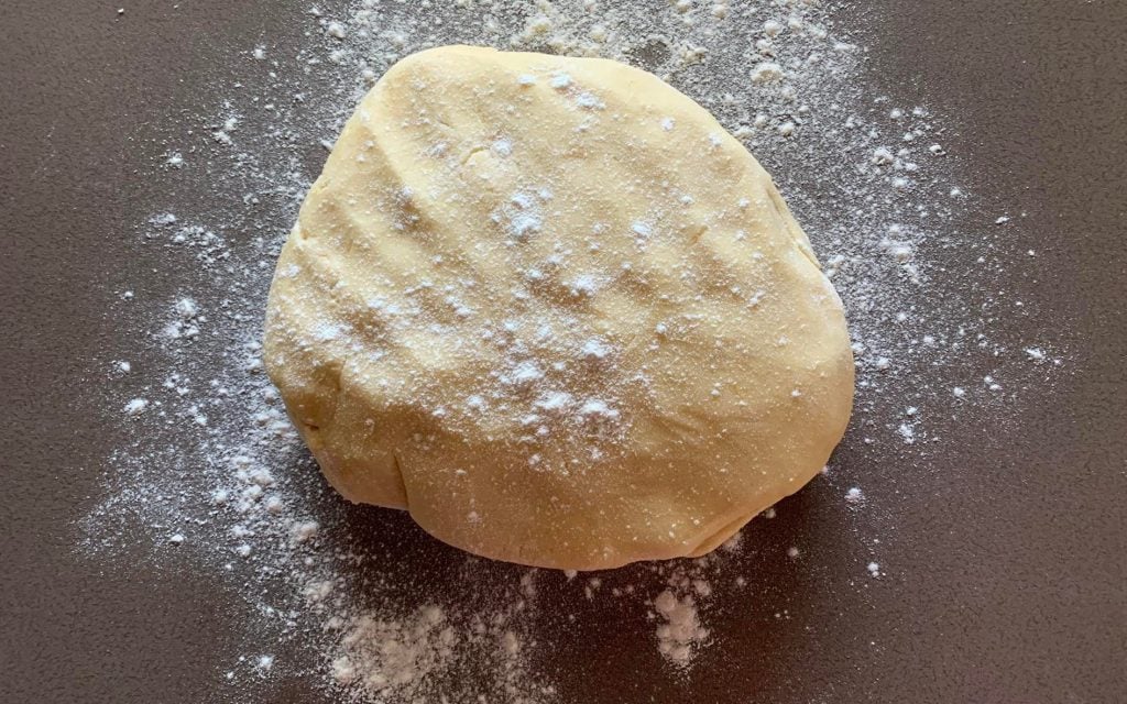 Transférer la pâte obtenue sur le plan de travail fariné3, et travaillez-le à nouveau pendant quelques instants ; formez ensuite une boule, enveloppez-la dans un film transparent et laissez-la reposer au réfrigérateur pendant 30 minutes.