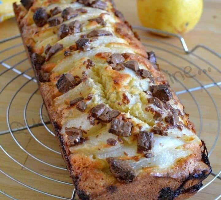 Verser la moitié de la pâte dans le moule (beurré et fariné si nécessaire). Disposer une couche de poires coupées en lamelles. Répartir la moitié du chocolat concassé en pépites. Recouvrir du reste de pâte puis du reste de lamelles de poires. Saupoudrer de cassonade et du reste de pépites de chocolat. Répartir les noisettes de beurre qui feront caraméliser le dessus du cake.
