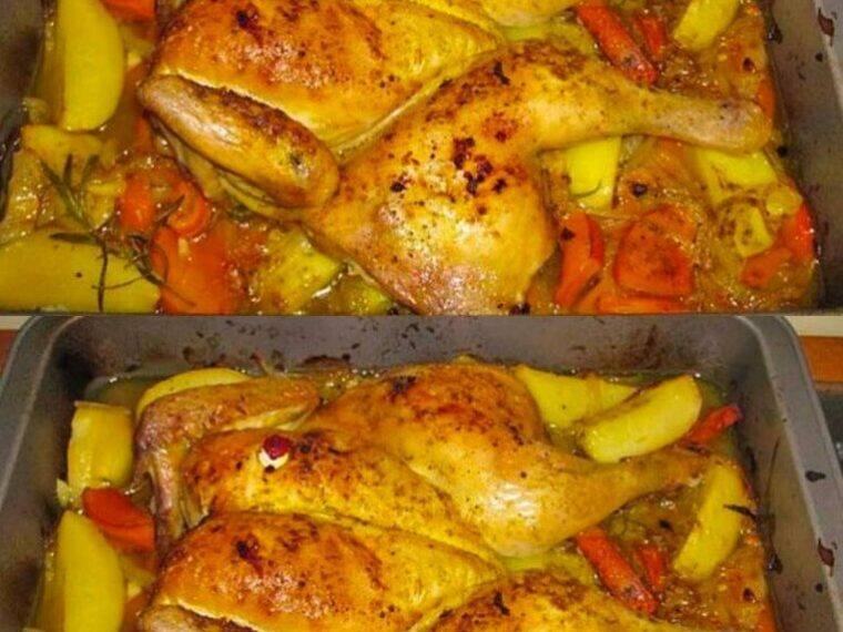 20 minutes avant la fin de la cuisson, ajouter les poitrines de poulet et laisser cuire. Si vous mettez la poitrine au four dès le début, elle sera trop sèche.