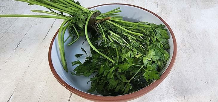 - Lavez le persil pour enlever la saleté;