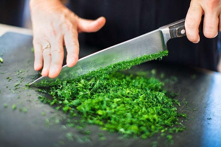 - Hacher finement le persil. Vous pouvez le faire manuellement avec un couteau et une planche à découper ;