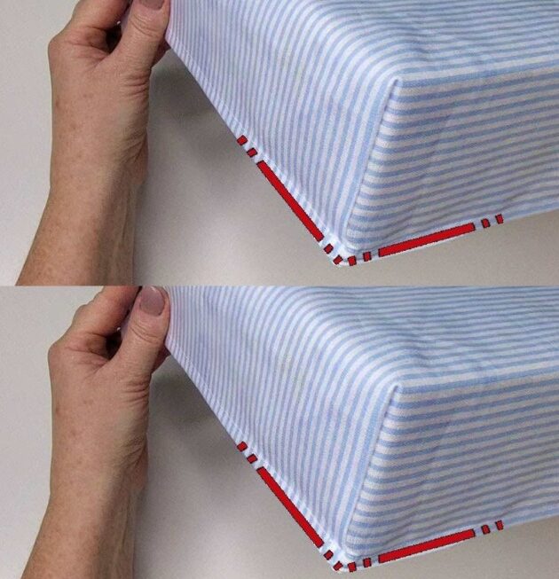 De plus, en utilisant cette méthode, vous gagnerez du temps. Au lieu de devoir ajuster constamment le tissu et de le repasser pour qu’il reste bien en place, vous pourrez coudre vos coins de manière plus efficace et précise.