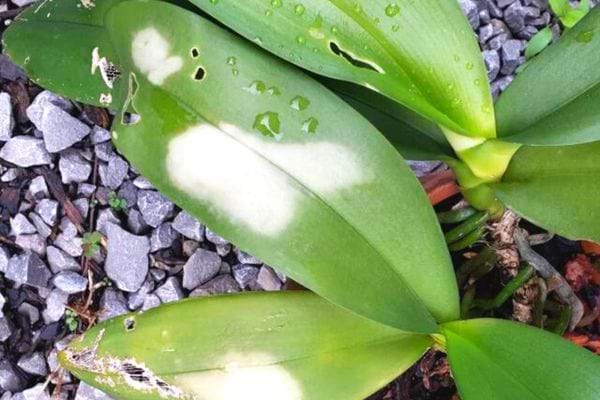 Une seule solution : Déplacer l’orchidée dans un endroit lumineux, mais sans soleil direct. Au besoin, coupez les feuilles trop endommagées.