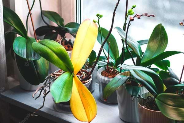 Une orchidée qui jaunit vous montre que ses conditions de vie ne sont pas optimales. Trop chaud, trop d’eau ou pas assez, maladie, soleil direct…