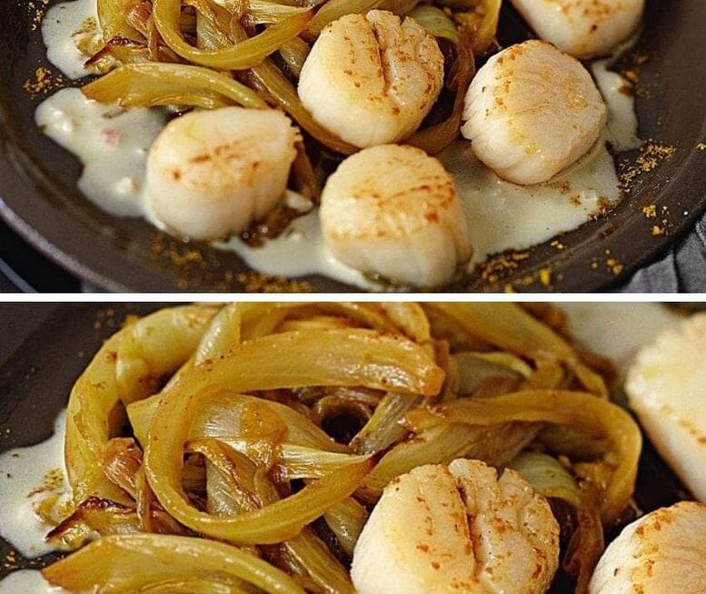 Salez et poivrez un peu les saint-jacques Saisissez-les avec le reste de beurre dans une poêle 1 min de chaque côté. Répartissez endives et saint-jacques dans 6 assiettes chaudes, nappez de sauce, servez.