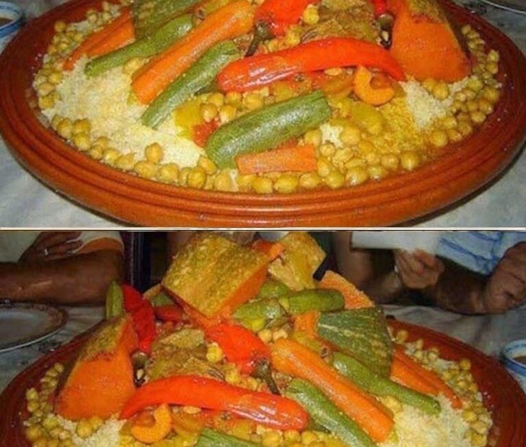 Servez la semoule et les légumes ensemble (pois chiches à part) et le bouillon filtré dans une soupière.