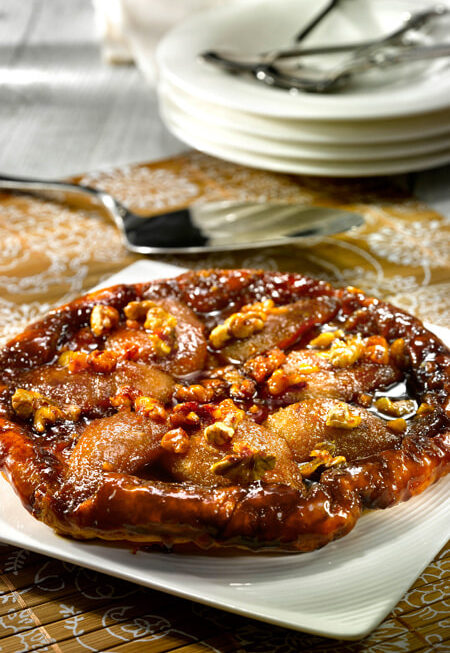 Sortez la tarte du four, laissez refroidir et renversez-la sur un plat de service.