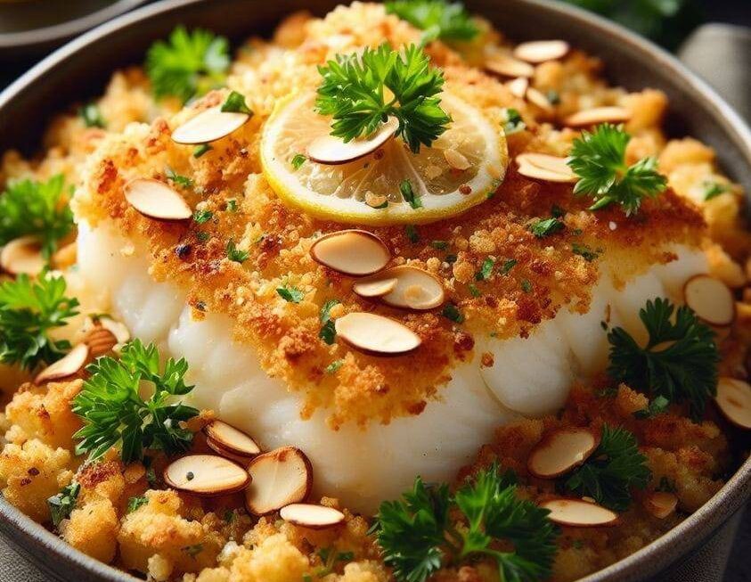 Lavez, séchez et ciselez la ciboulette. Déposez un lit de poireaux dans 4 assiettes, ajoutez un pavé de cabillaud et recouvrez de crumble aux amandes. Parsemez de ciboulette. Servez sans attendre