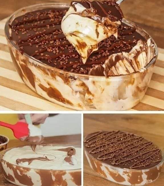 Décorez avec de la crème de noisette et des vermicelles au chocolat selon votre goût et régalez-vous avec ce dessert glacé