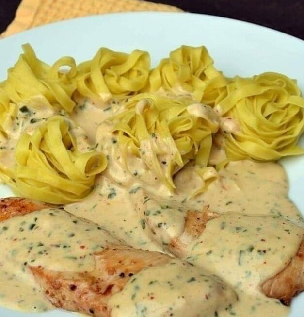 - Remettez les escalopes de poulet dans la poêle pour les enrober de la sauce crémeuse.