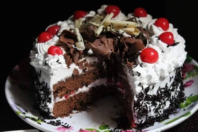 Décorer votre Forêt Noire avec des copeaux de chocolat et de la chantilly.