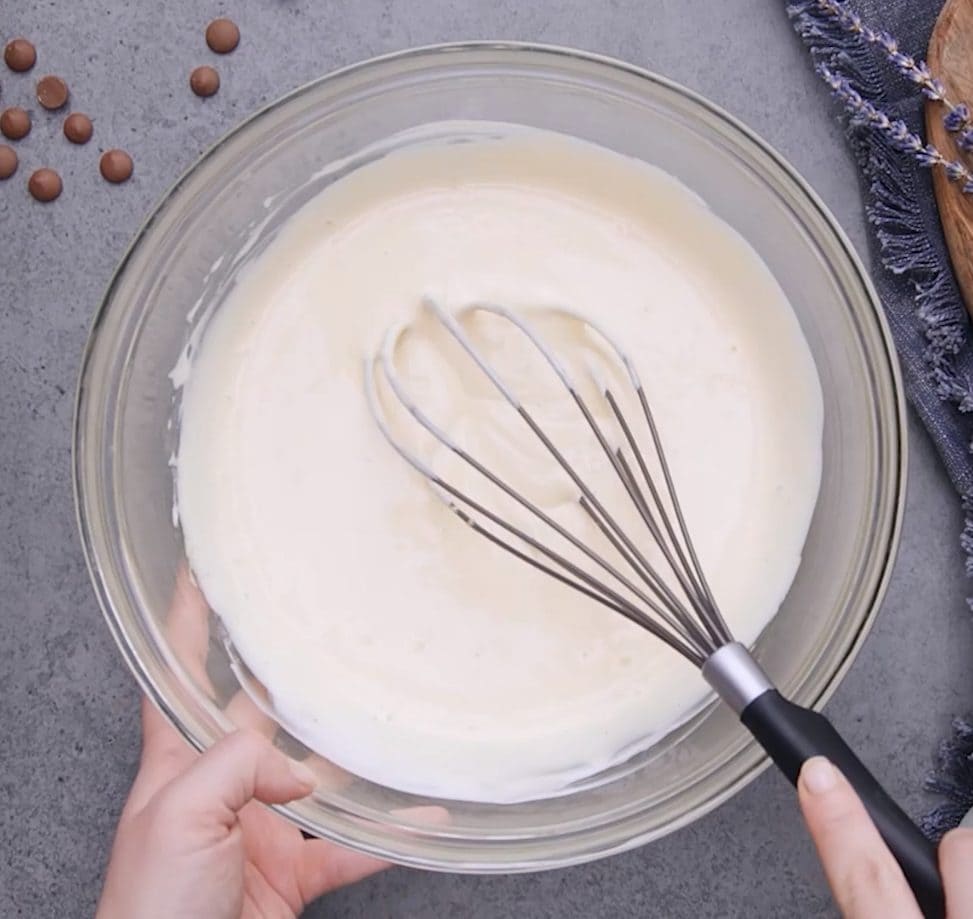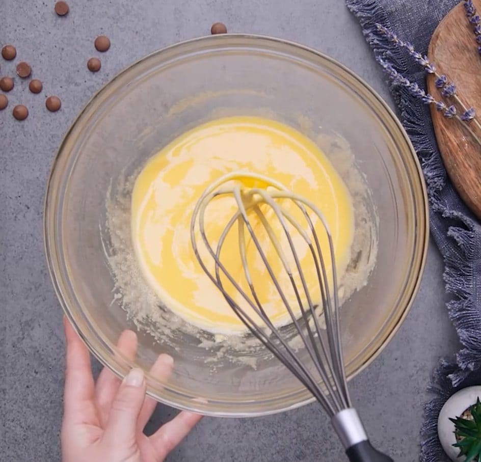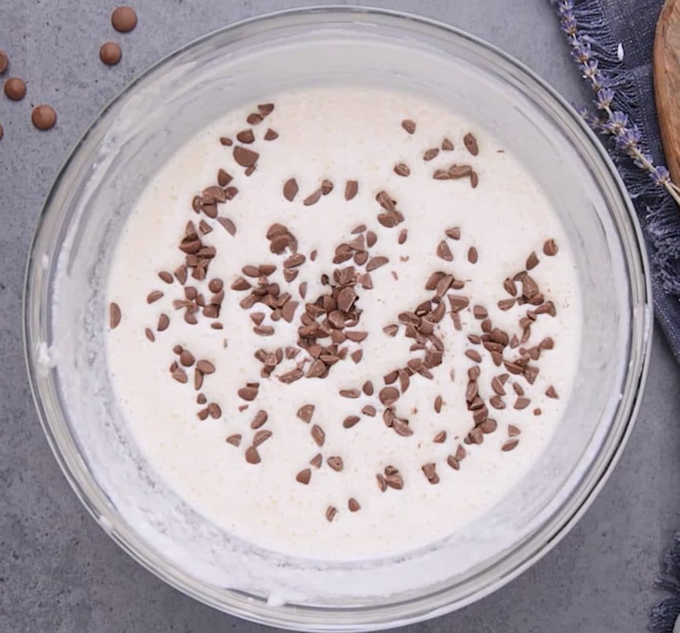 Ajouter les pépites de chocolat et mélanger délicatement.