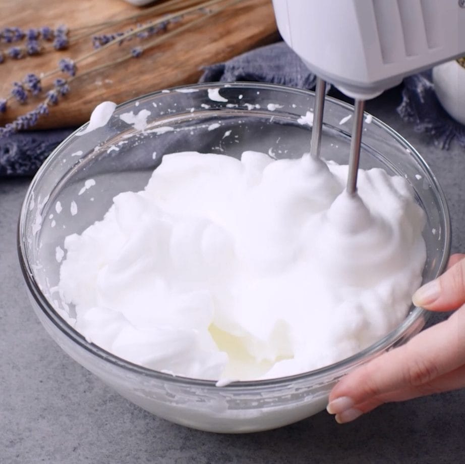 Dans un autre bol propre, battre les blancs d’œufs jusqu’à ce qu’ils forment des pics fermes.