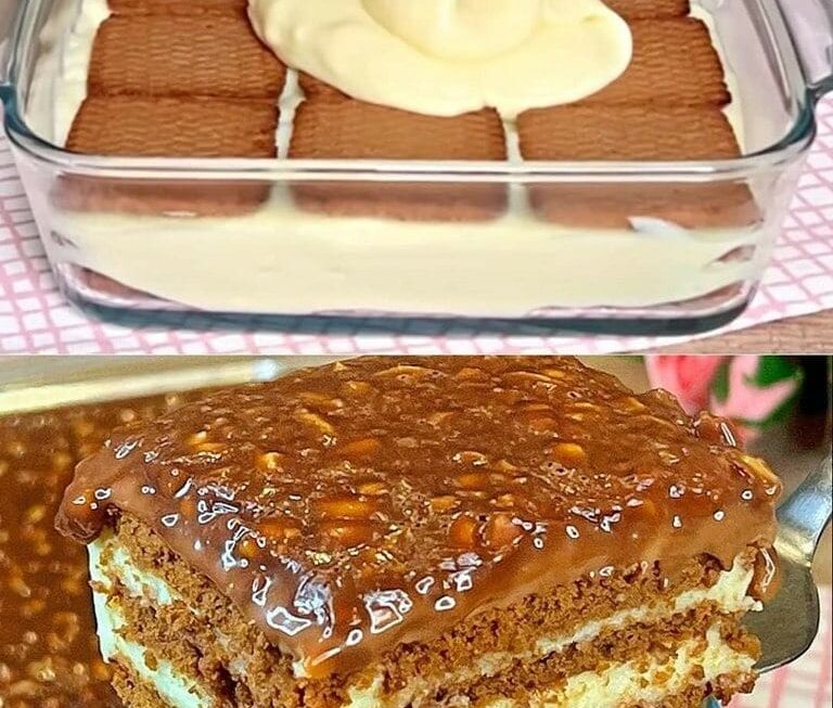 Disposer les biscuits dans un plat à four en une couche compacte et les recouvrir de crème. Faire d’autres couches de la même façon.