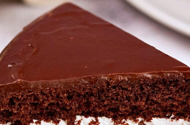 - Pour la ganache, faites fondre le chocolat et la crème au micro-ondes et versez la ganache sur le gâteau. Étalez pour couvrir les côtés, puis refroidissez le gâteau jusqu’à ce que la couche extérieure soit prise.
