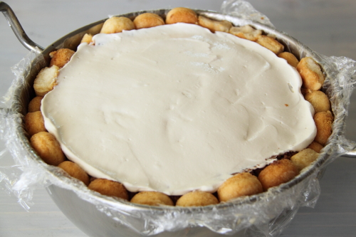 Couvrir le gâteau avec un film plastique et réfrigérer pendant la nuit.