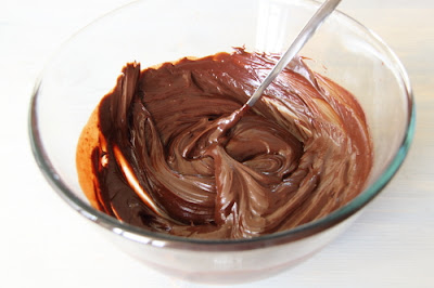 Commencer par la garniture au chocolat: