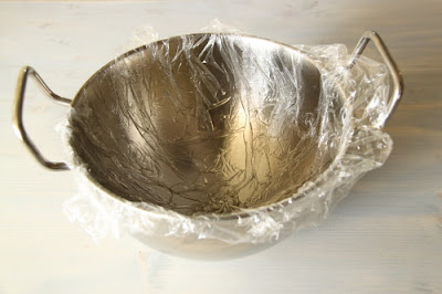 Graisser le bol ou le cul de poule, d’un film plastique, de sorte qu’il couvre toute la cavité.