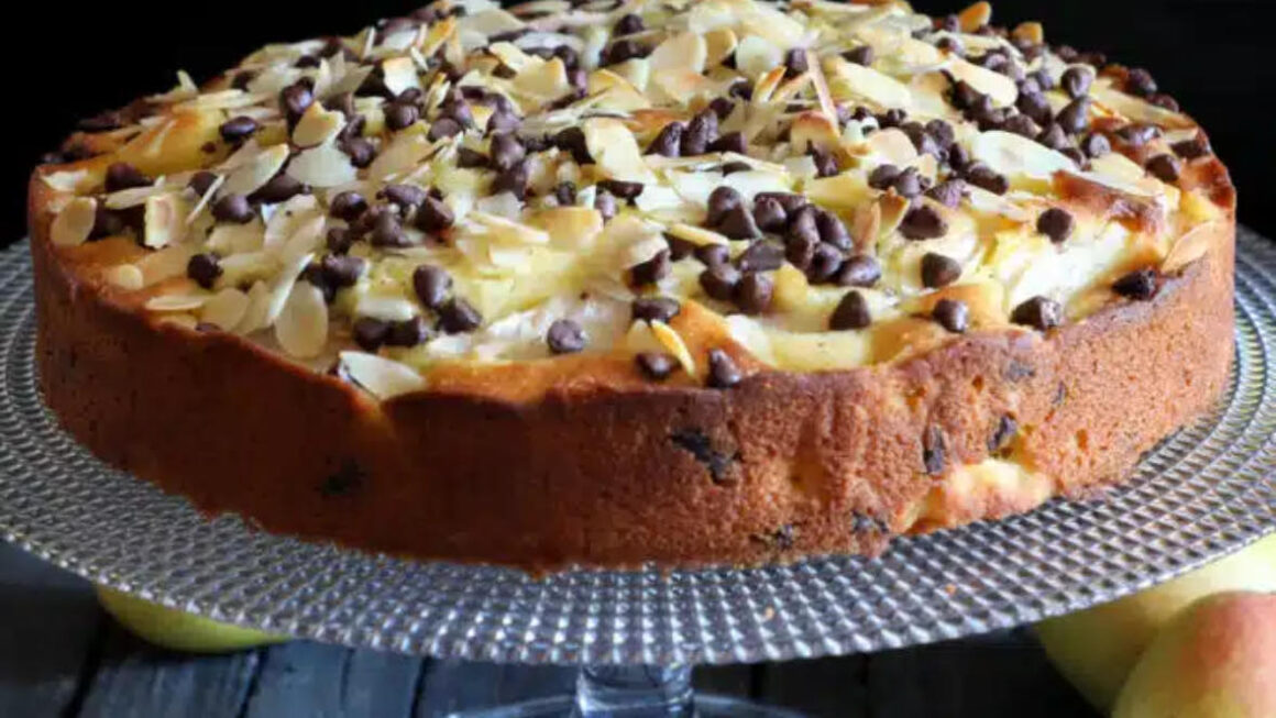 Une fois les poires recouvertes de pâte, déposer sur le dessus les lamelles restantes. C’est optionnel mais moi je préfère parsemer le gâteau d’amandes effilées ça donne un excellent craquant au gâteau.