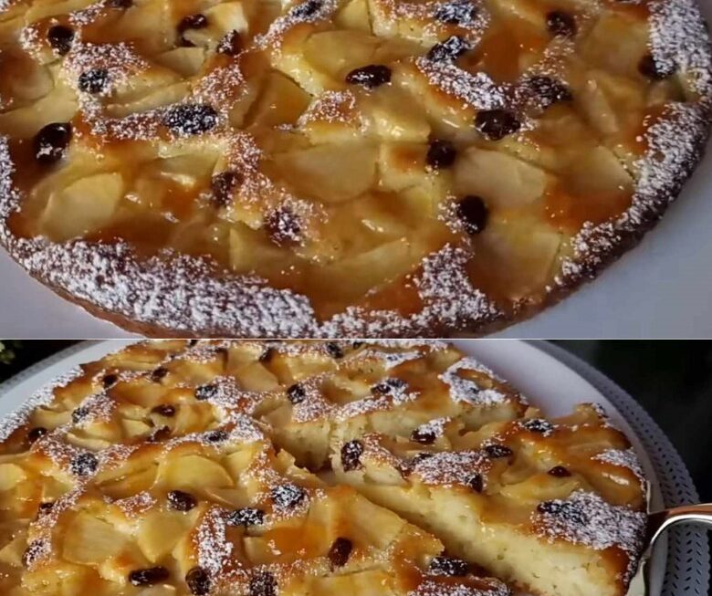 Ce gâteau sera délicieux et parfumé grâce au zeste de citron, et les raisins secs et les pommes ajouteront une touche de douceur et d’humidité. Bon appétit !