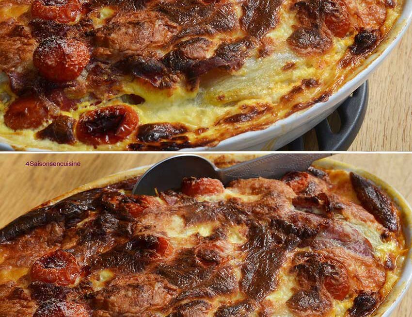 Coulez finalement le mélange liquide et enfourner pour 30 à 40 minutes. Le dessus doit être gratiné.