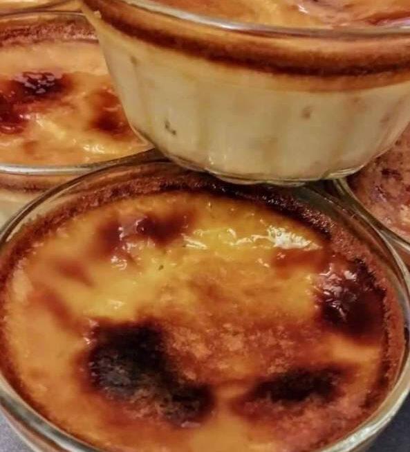 Placez-les dans un grand plat allant au four avec la moitié de l’eau chaude pour créer un « bain-marie » et faites cuire environ 40 minutes, jusqu’à ce que la surface soit bien dorée.