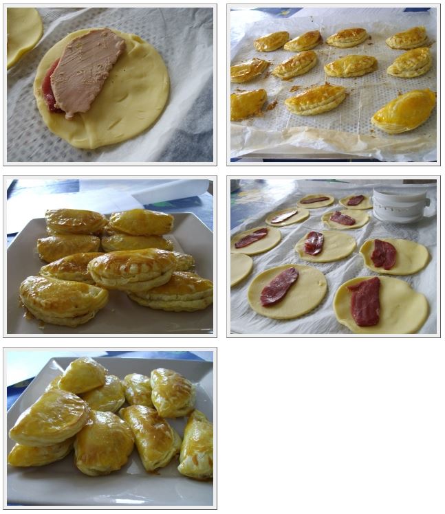 Dans un moule à mini-chausson déposer un rond de pâte feuilletée, une tranche de magret, une demie-tranche de foie gras. Fermer afin de bien souder les mini-chaussons. Vous pouvez faire de même à la main. Penser à bien souder chaque mini-chausson.