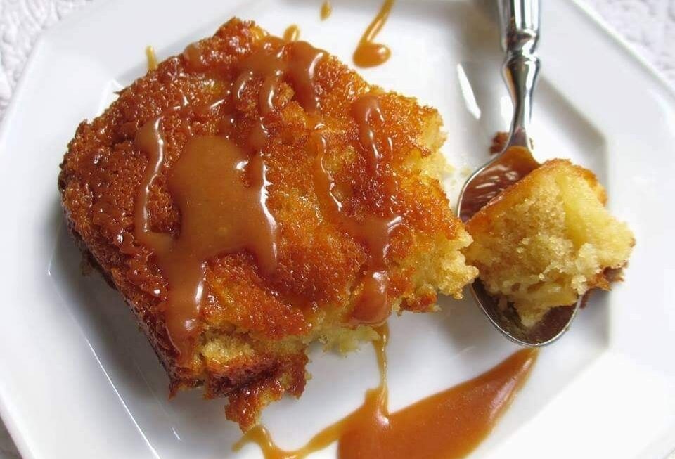 Verser la pâte puis parsemer la surface de quelques filets de caramel. Enfourner pour 30 minutes. Démouler et proposer du caramel en supplément pour les plus gourmands..