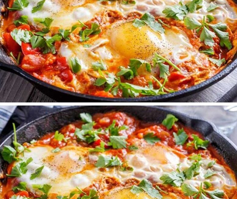 Cuire quelques minutes, jusqu’à ce que les œufs soient cuits, et les tomates fondantes.