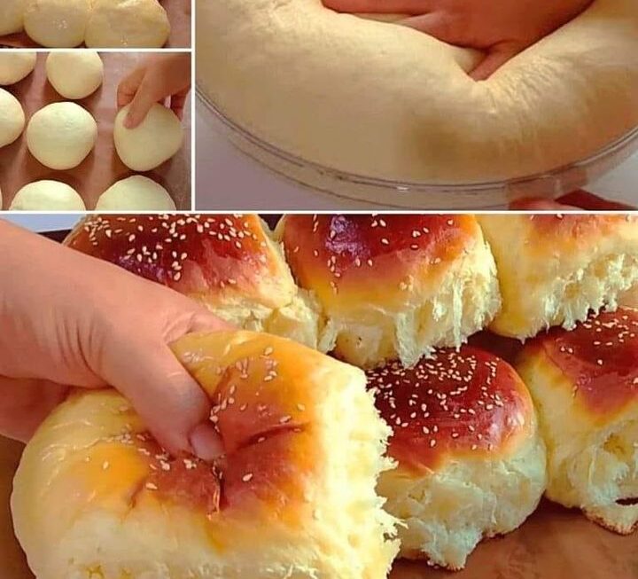 5. Nous devons pétrir pendant environ 20 minutes. 6. Réserver la pâte dans un bol préalablement graissé, couvrir d’un linge propre ou d’un film plastique et laisser reposer dans un endroit chaud pendant 30 minutes. Pain brioché : 1. Nous posons la pâte sur un comptoir et la divisons en morceaux d’environ 50 grammes, les plaçons dans un moule graissé ou sur un plateau et laissons à nouveau fermenter pendant 30 minutes supplémentaires. préparation Pâte à brioche : 1. Dans un petit bol, versez le lait tiède avec la levure et mélangez jusqu’à complète dilution. nous avons réservé 2.