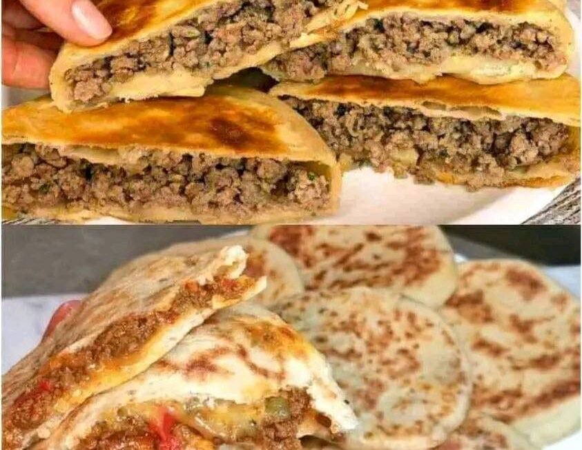 Méga délicieux gâteaux plats remplis de viande hachée à manger jusqu’à satiété