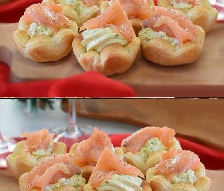 Une idée géniale pour créer des délicieux paniers feuilletés pour les entrées pendant les fêtes de Noël : paniers feuilletés saumon fumé, avec une délicieuse crème au fromage frais à tartiner et pesto.