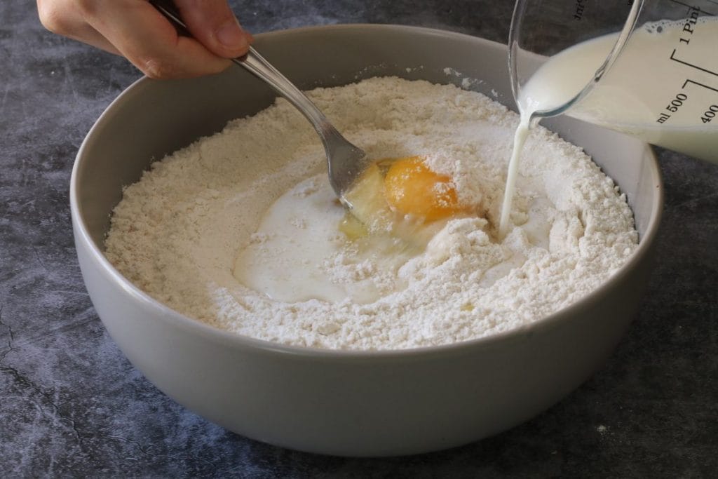 Ajoutez également le zeste de citron râpé, l’œuf et le lait lentement.2.
