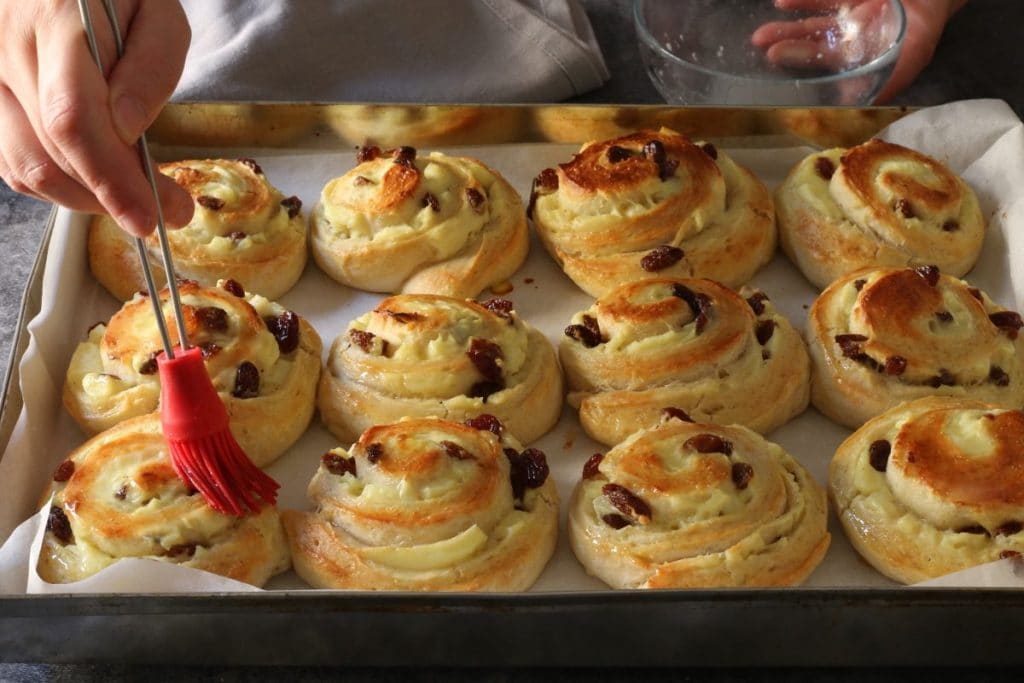 Les pâtisseries danoises aux raisins sont des brioches moelleuses fourrées à la crème anglaise et aux raisins secs. Bien connus et répandus sur les comptoirs des bars pour le petit-déjeuner, ils peuvent être réalisés à la maison sans trop de difficultés.
