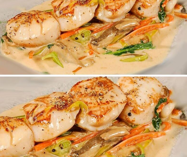 Ajouter la crème, l’estragon, les pétoncles et leur jus s’il y en a. Bien mélanger et réchauffer quelques secondes à découvert.