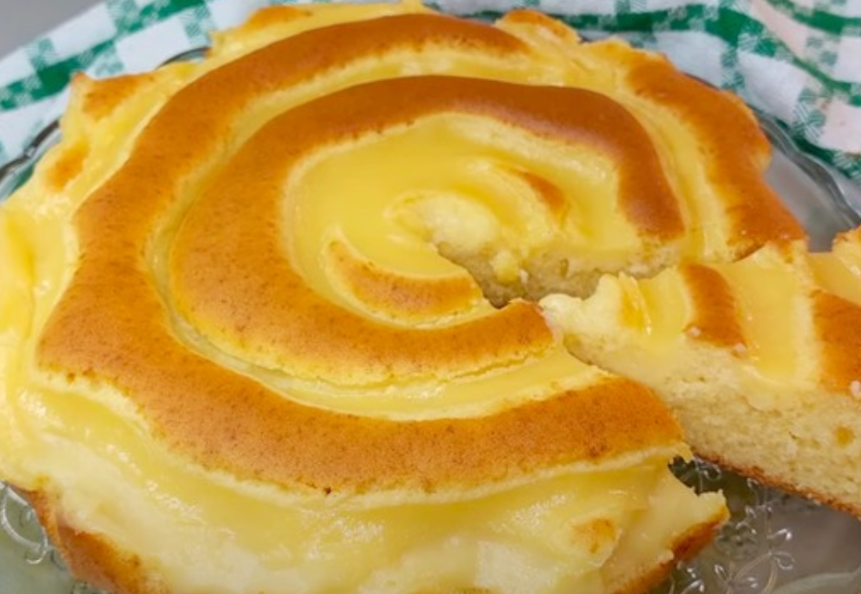 - Verser la pâte dans un moule, puis ajouter la crème au citron en formant une spirale.