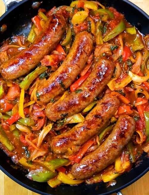 Remettre la saucisse dans la poêle avec les légumes. Réduire le feu à doux et laisser mijoter 15 minutes ou jusqu’à ce que la sauce épaississe.