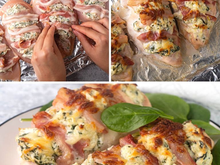 Comment faire du poulet au bacon et aux épinards