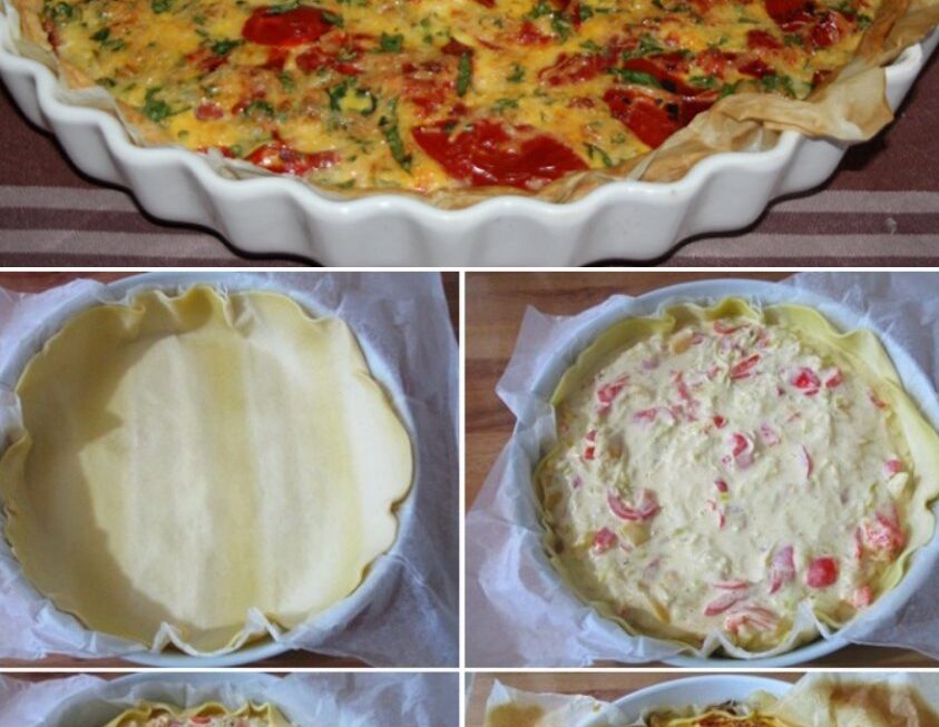La quiche est une tarte salée garnie de migaine. Une recette inventée pour « liquider » les poivrons du jardin… c’est un pur bonheur accompagnée d’une salade verte !