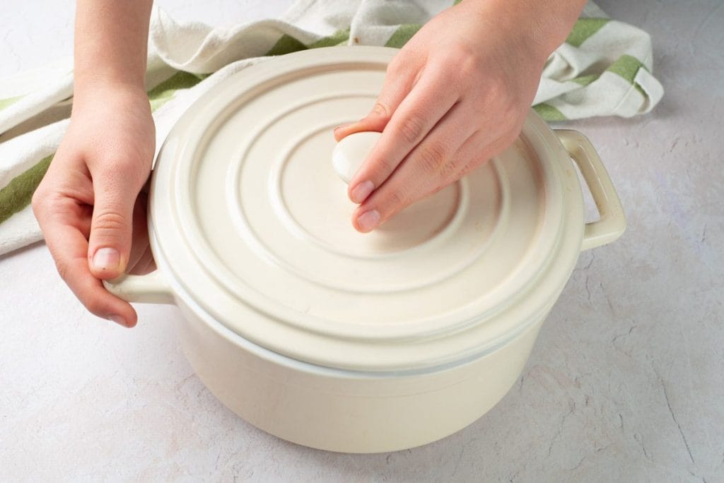 Portez le ragoût à ébullition, puis couvrez-le avec un couvercle. Placer la marmite au four. Cuire pendant 2 heures.