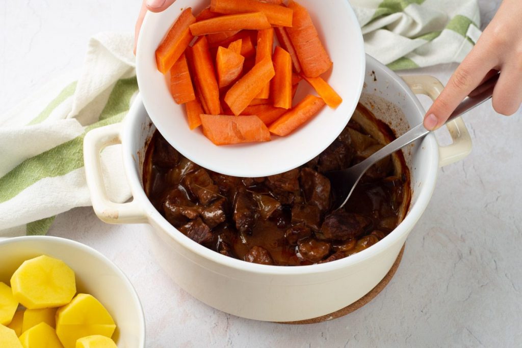 Sortez le four hollandais et ajoutez les carottes au ragoût.