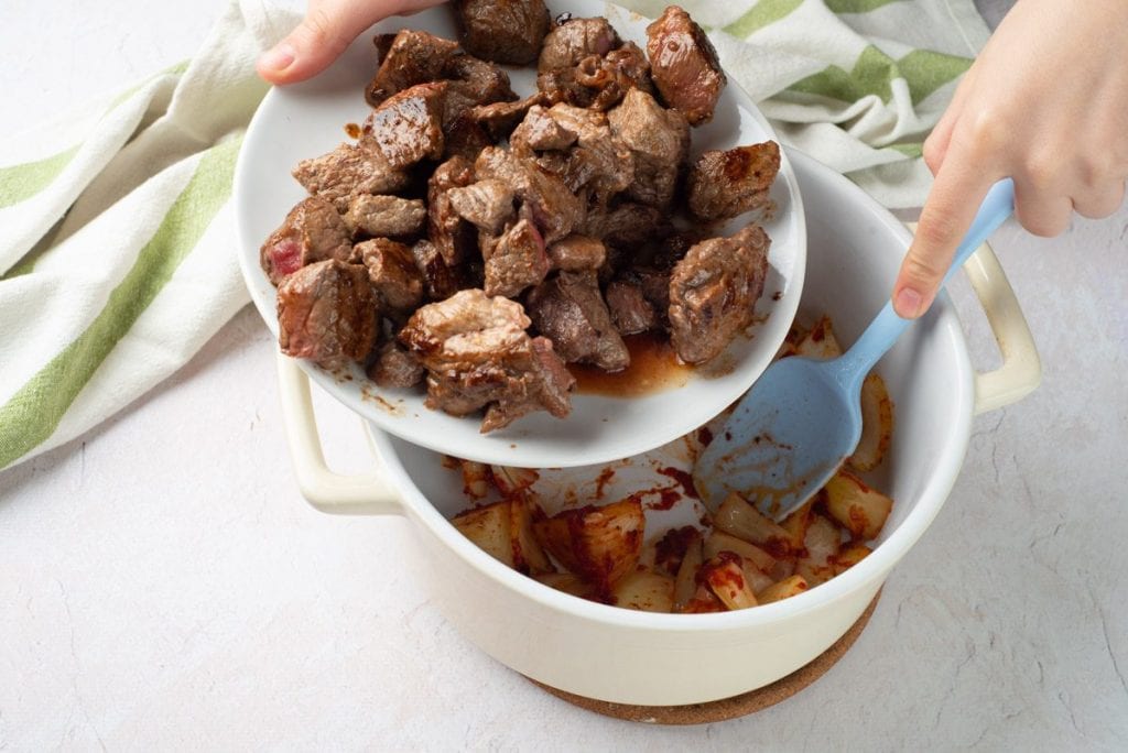 Assurez-vous de gratter tous les morceaux brunis du fond de la casserole. Ils ajouteront beaucoup de saveur à votre ragoût.