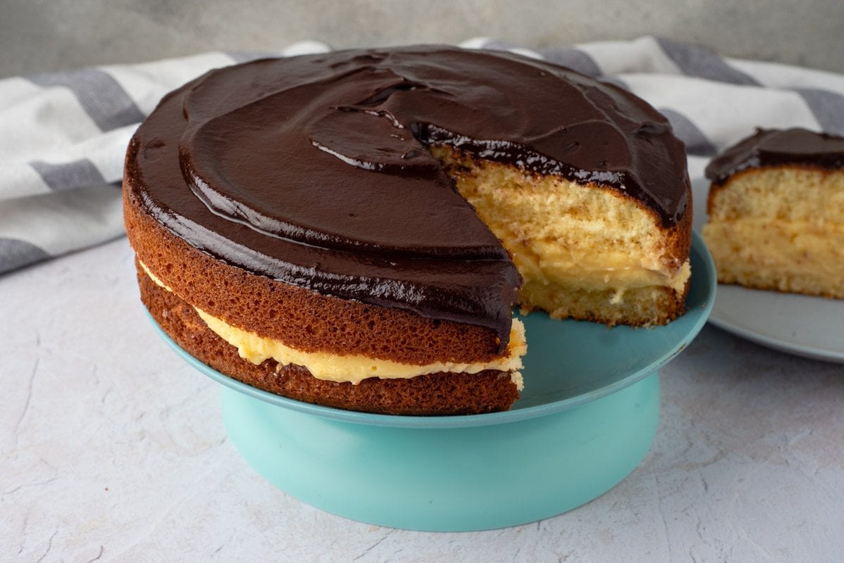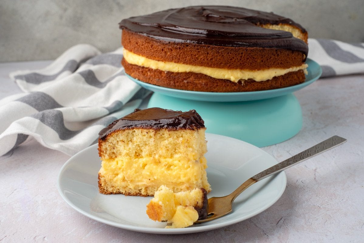 En dépit de son nom, la tarte à la crème de Boston est en fait un gâteau. Elle est composée d’un gâteau à la vanille, d’une crème à la vanille et recouverte d’une riche ganache au chocolat.